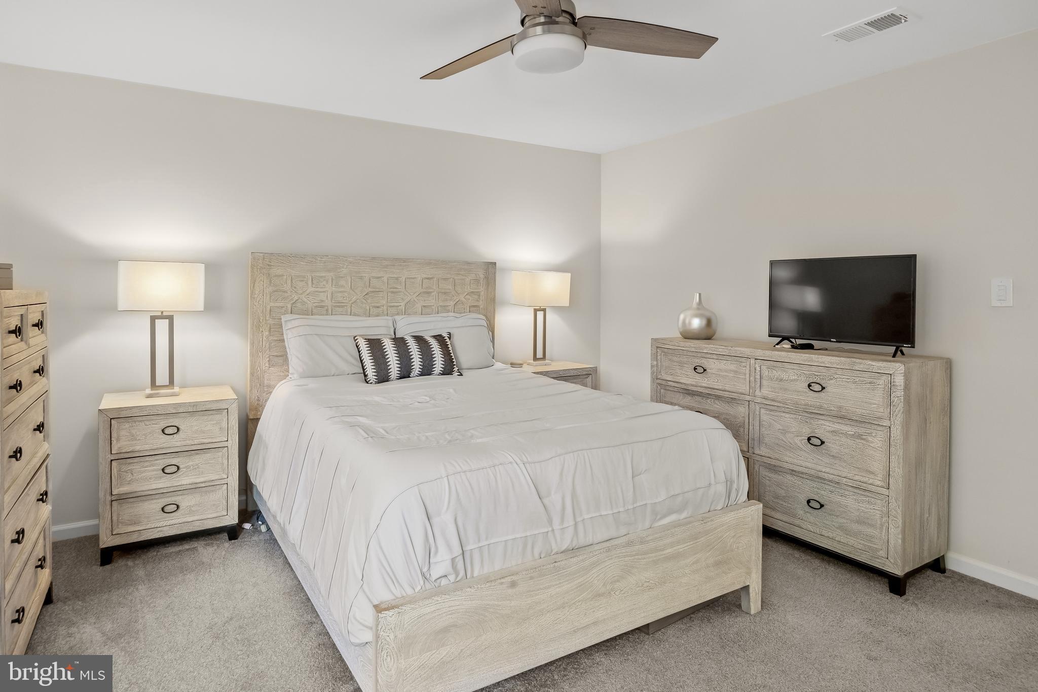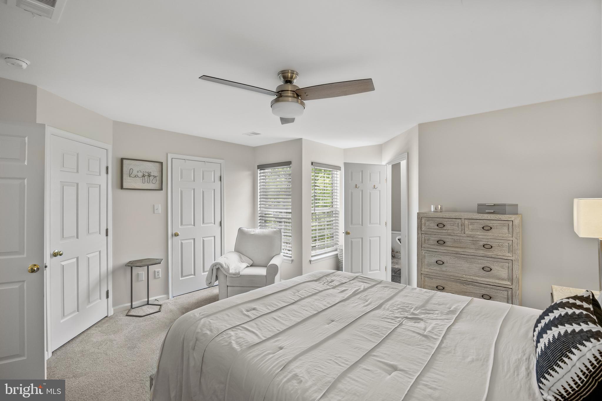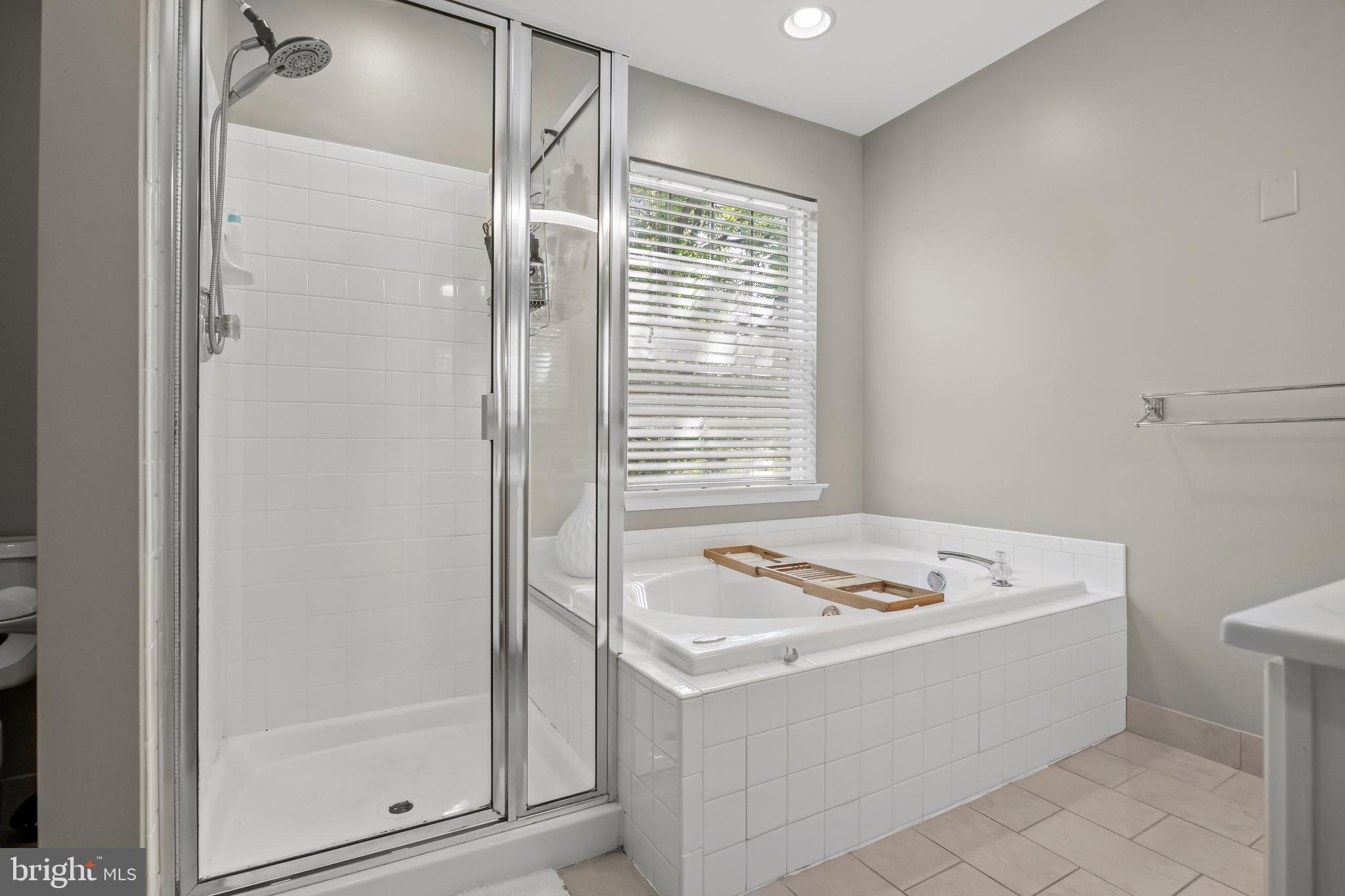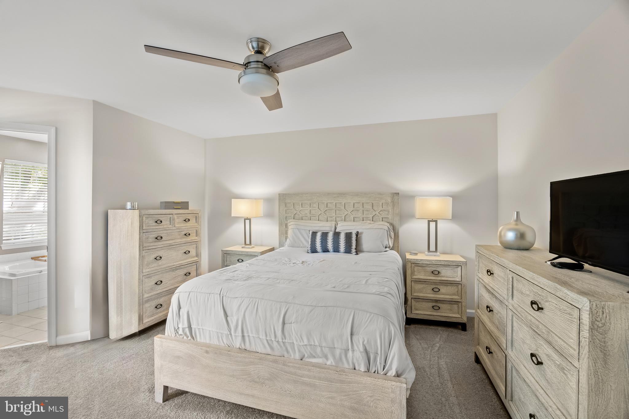 Upstairs, the primary bedroom is a well-proportioned haven with a large walk-in closet and an additional closet for ample storage. The ensuite bath offers a walk-in shower and a separate soaking tub, designed for relaxation and rejuvenation. The second bedroom, equally generous in size, provides extensive closet space and is conveniently located near the hall full bath.